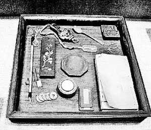 抓周礼所需之物,也已齐备。计有钢笔、毛笔、笔记本、《古兰经》、木剑、玩具等。明日都将置于桌上,让小儿任意来抓。全家老小,寄望小儿能抓到一个较理想的物件。因教门中常有人言,如果男孩抓到了笔,将来便是个满腹诗书的读书人;如果抱起了《古兰经》,就会是个学识渊博的虔诚阿訇;如果拿起了剑,就是个好勇尚武的好汉;如果既抓了笔又拿了剑,那将来便是个文武双全的将才了。母亲最为担心的,无非是万一小儿一手抓起玩具,将来只怕要变成好吃懒做之人;万一小儿什么也不抓,那他将来可就一事无成,一辈子做个庸人了。