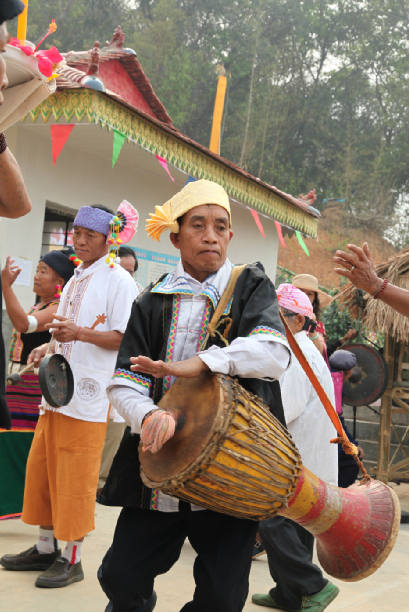 新年到时,漥墨寨的布朗族人们事先就发出通知,邀请外寨人来一起“跳歌”,在间隙时间也常常有两寨人集体赛唱歌,谁输了谁就得出猪头请客,在一阵生动诙谐的对唱以后,人们又继续“跳歌”,往往通宵不散,难解难分。