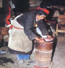 门巴族妇女在打酥油