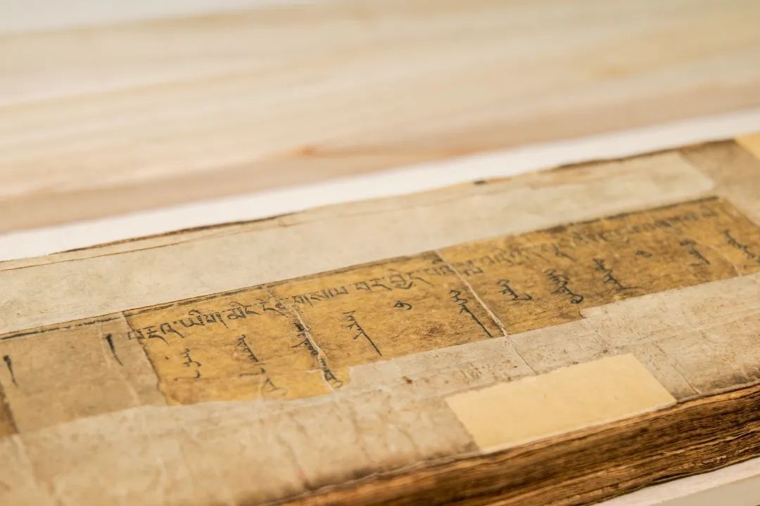藏蒙对照词典《详解月光辞典》又称《浩月辉映词典》,该词典由阿拉善拉隆巴阿旺丹德尔编著,清道光十八年(1838)北京嵩祝寺木刻本。1卷,139叶,页面尺寸10.6×56厘米,版框尺寸7.5×49厘米,四周双栏,梵来装。每页以藏蒙、藏蒙四行为阶梯排列,每列35行,每行1字。页面左侧有藏文页码,右侧有汉字《永》和汉文页码。